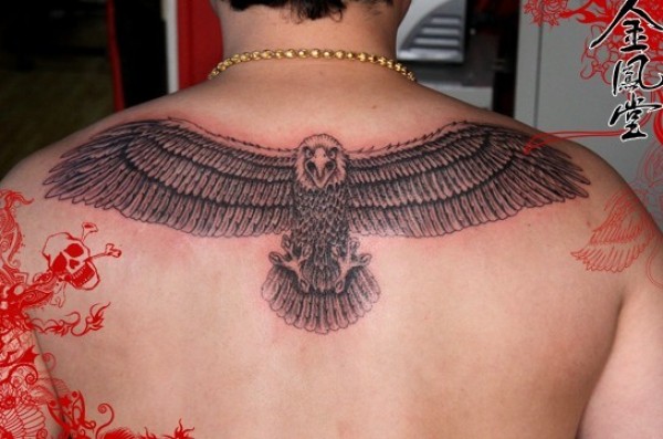 后背展翅大雄鹰纹身图_后背纹身图案大全_纹身图吧