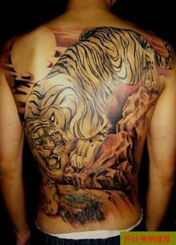 满背猛虎下山menghuxiashan图_后背纹身图案大全_纹身图吧