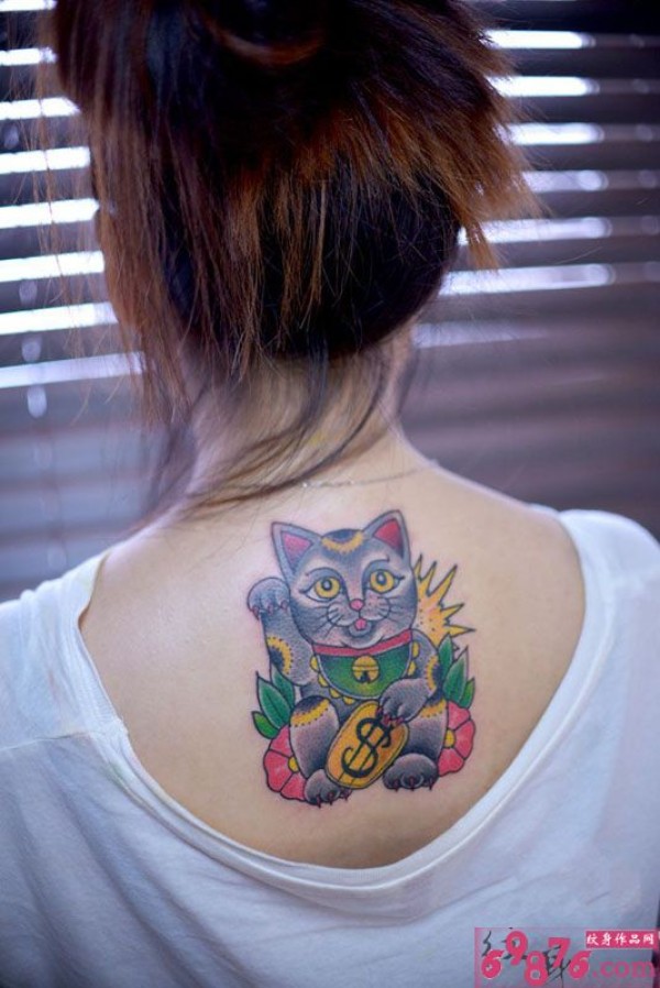 背部可爱招财猫刺青图案_后背纹身图案大全_纹身图吧