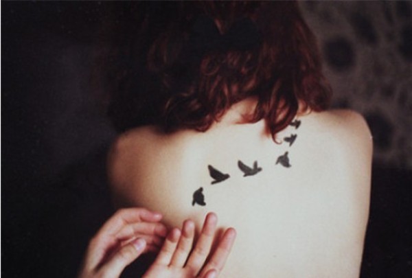 女性背部小鸟飞漂亮意境刺青_后背纹身图案大全_纹身图吧