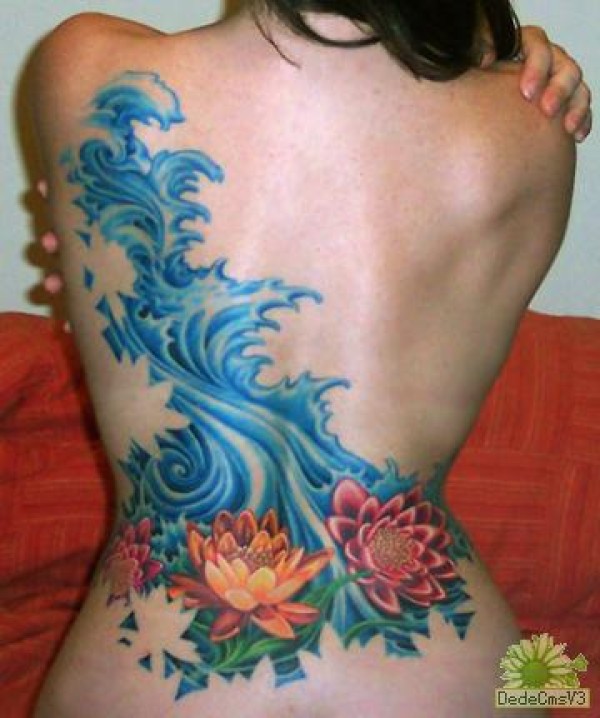 女性后背漂亮的两朵荷花_后背纹身图案大全_纹身图吧