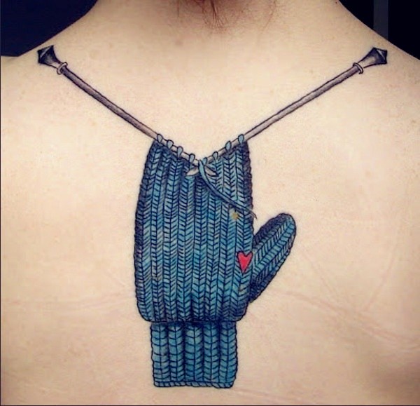 女性背部织毛线创意彩色可爱刺青_后背纹身图案大全_纹身图吧
