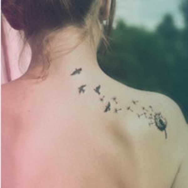 女性背部小鸟刺青_后背纹身图案大全_纹身图吧