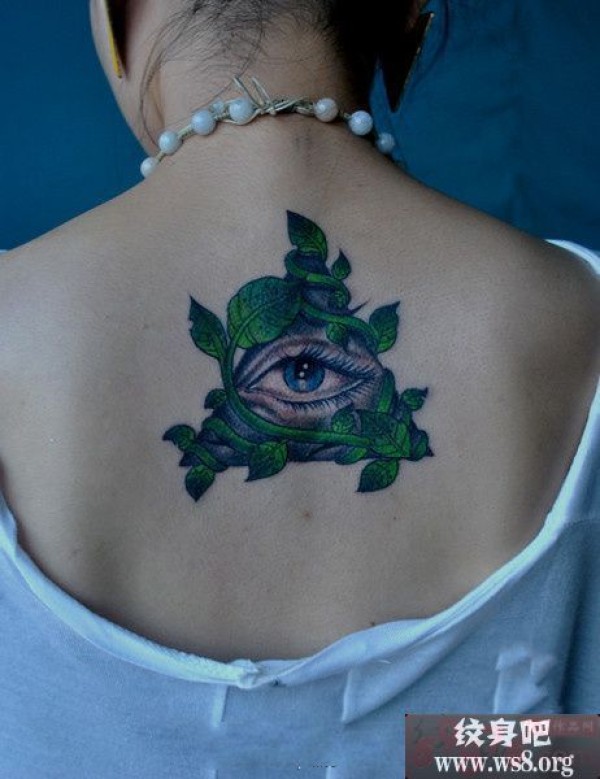 创意树叶三角眼后背图案_后背纹身图案大全_纹身图吧