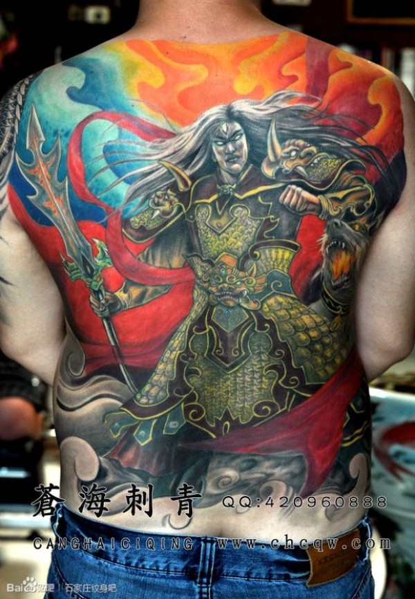 苍海刺青满背彩色二郎神杨戬纹身作品_后背纹身图案大全_纹身图吧