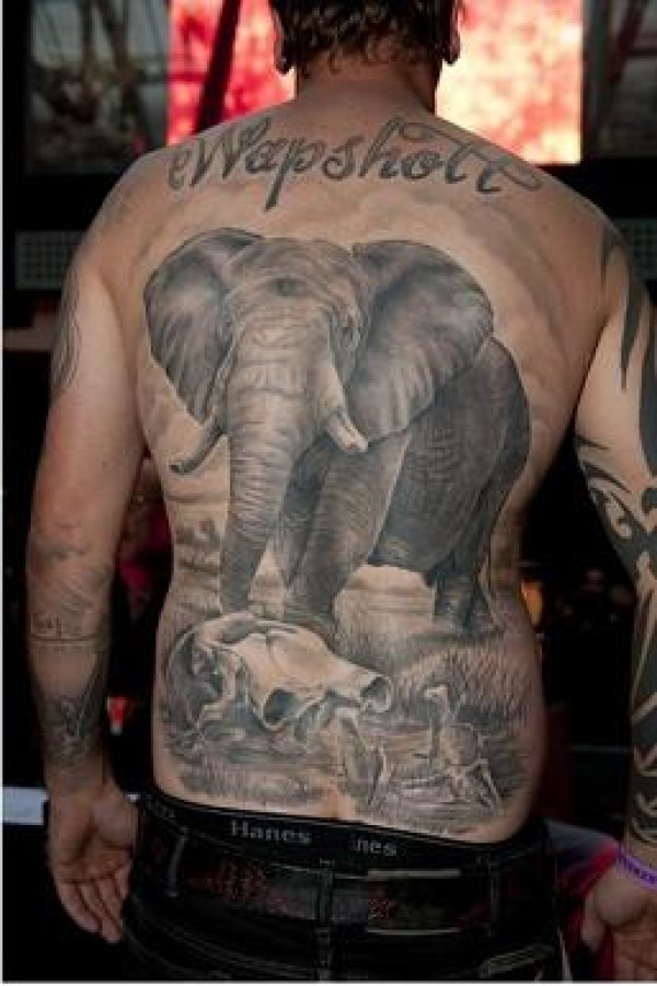 给力的满背大象纹身欣赏_后背纹身图案大全_纹身图吧