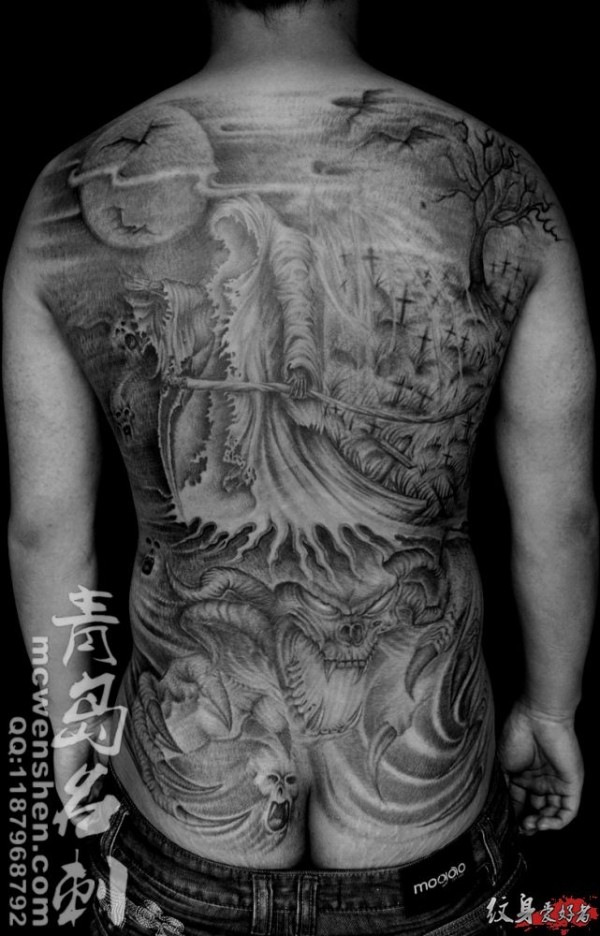 男人背部超霸气死神刺青图案_后背纹身图案大全_纹身图吧