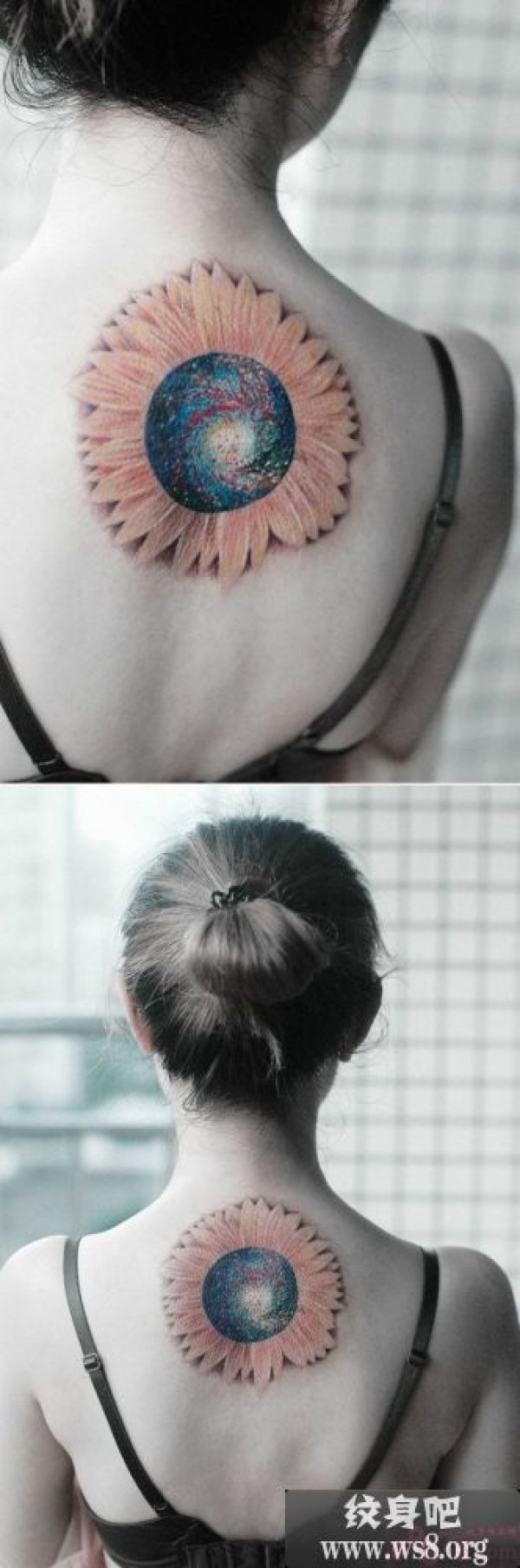 创意向日葵星空后背图案_后背纹身图案大全_纹身图吧