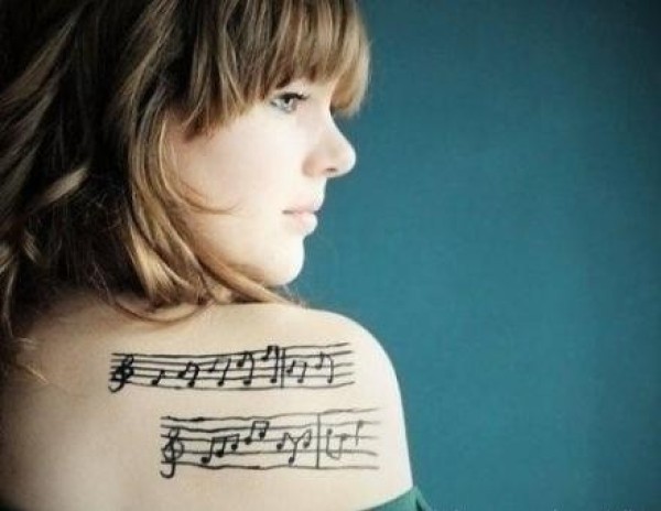 女性背部音符刺青_后背纹身图案大全_纹身图吧