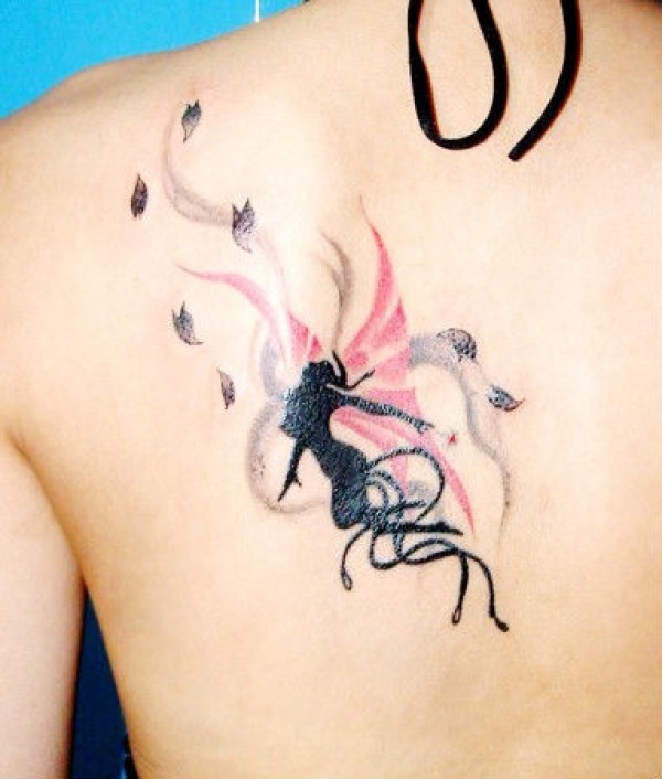 女性背部彩色精灵刺青_后背纹身图案大全_纹身图吧