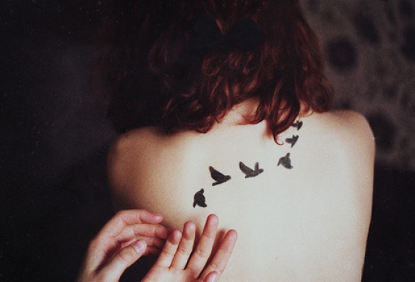 女性背部小鸟意境刺青_后背纹身图案大全_纹身图吧
