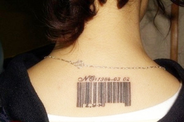 女性背部条形码独特刺青_后背纹身图案大全_纹身图吧