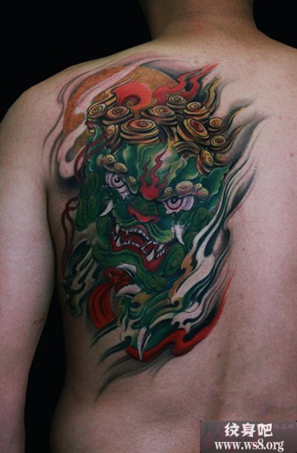复古霸气唐狮子背部刺青图案_后背纹身图案大全_纹身图吧