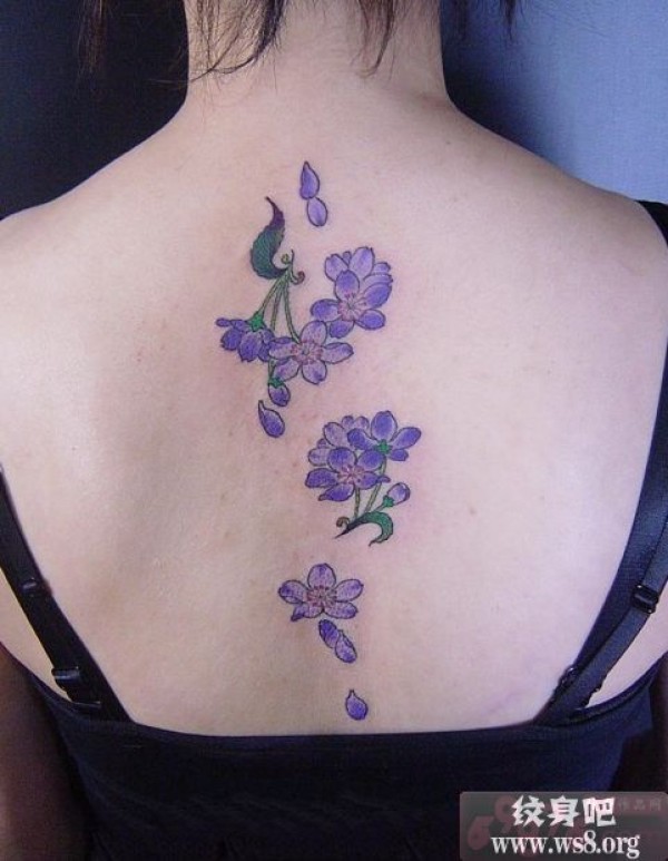 后背唯美紫色樱花图案图案_后背纹身图案大全_纹身图吧