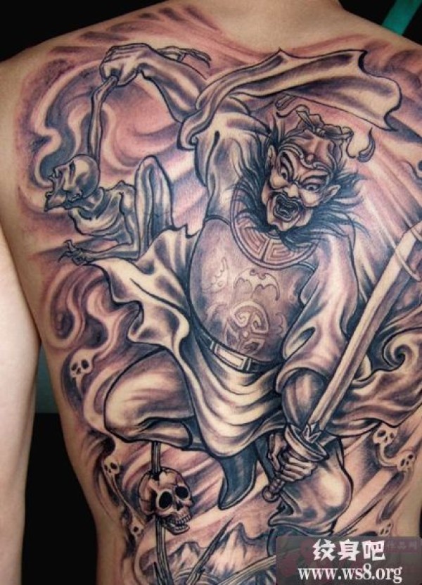 后背钟馗捉鬼刺青图案_后背纹身图案大全_纹身图吧