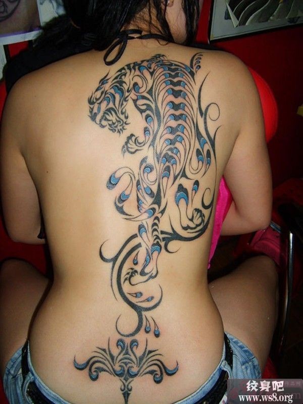 后背艺术老虎时尚刺青图案_后背纹身图案大全_纹身图吧