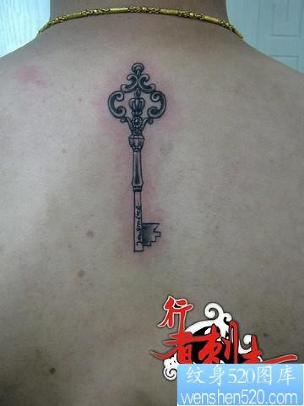流行的黑灰钥匙纹身图片_后背纹身图案大全_纹身图吧