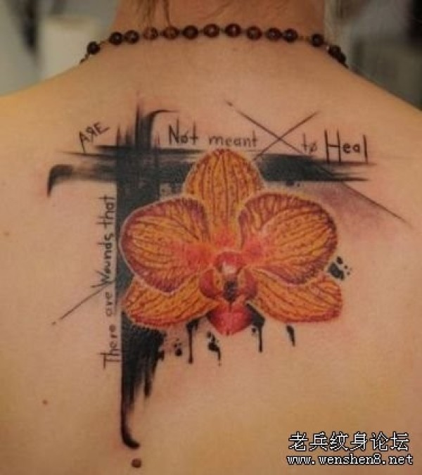 背部彩色花卉纹身图片_后背纹身图案大全_纹身图吧
