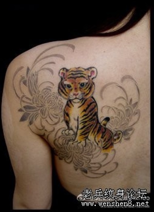 美女背部小老虎纹身图片_后背纹身图案大全_纹身图吧