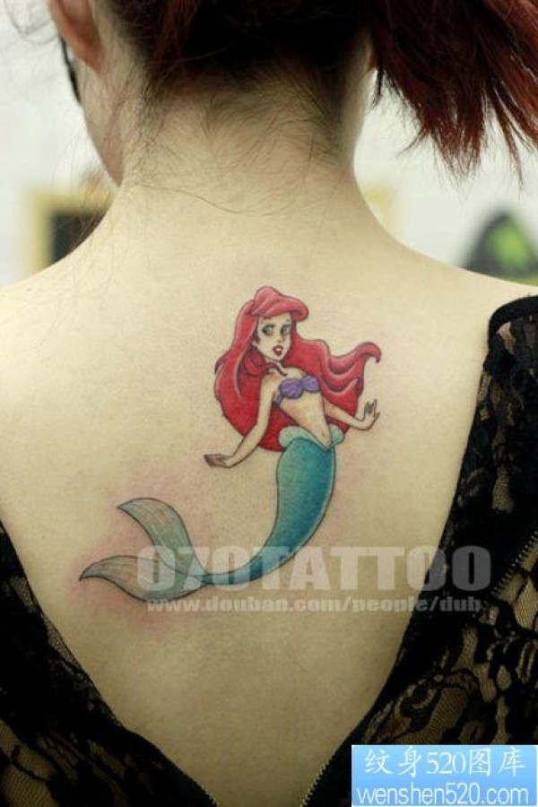女孩子背部好看可爱的美人鱼纹身图片_后背纹身图案大全_纹身图吧
