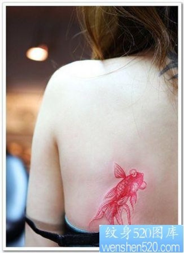 美女背部彩色小金鱼纹身图片_后背纹身图案大全_纹身图吧