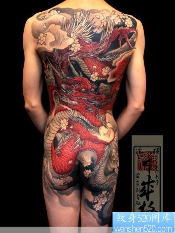 日本黄炎满背彩色龙纹身图片_后背纹身图案大全_纹身图吧