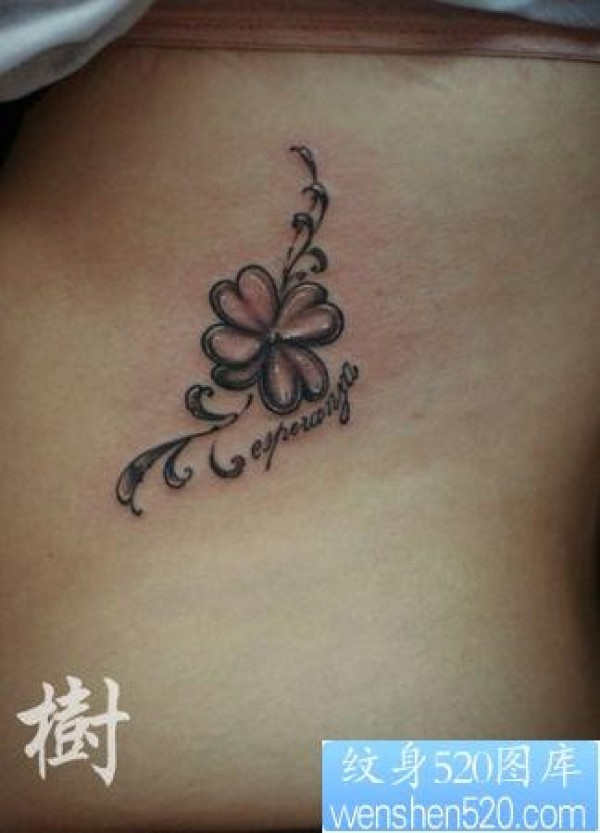 美女背部四叶草纹身图片_后背纹身图案大全_纹身图吧