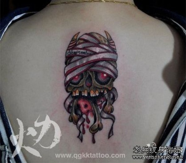 美女背部僵尸骷髅纹身图片_后背纹身图案大全_纹身图吧