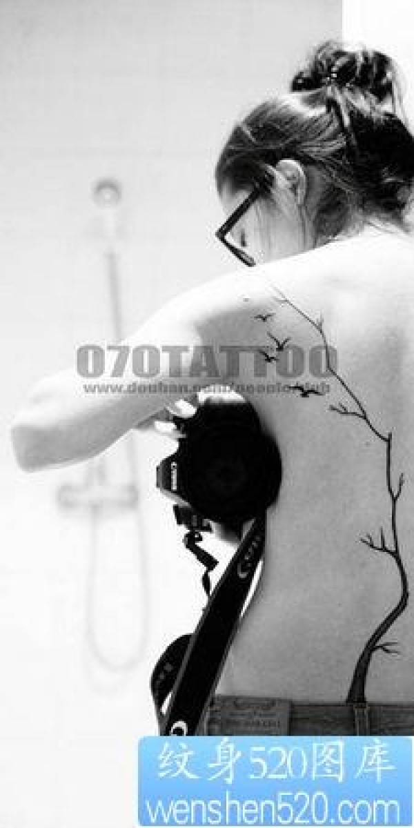 美女背部图腾树小鸟纹身_后背纹身图案大全_纹身图吧