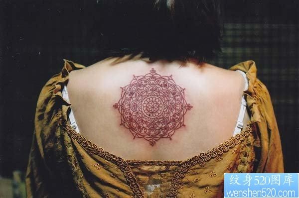 美女后背红色图腾纹身图片_后背纹身图案大全_纹身图吧