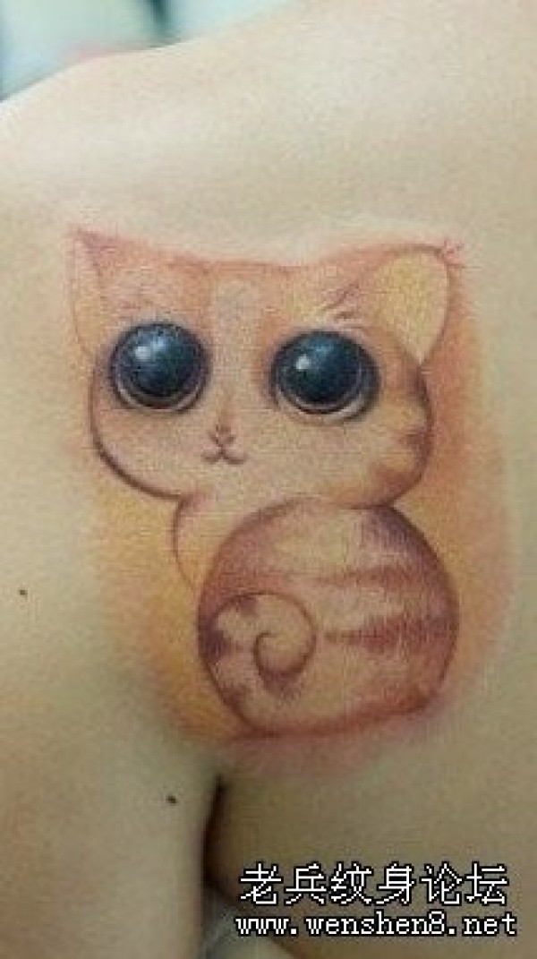 背部可爱小猫咪纹身图片_后背纹身图案大全_纹身图吧