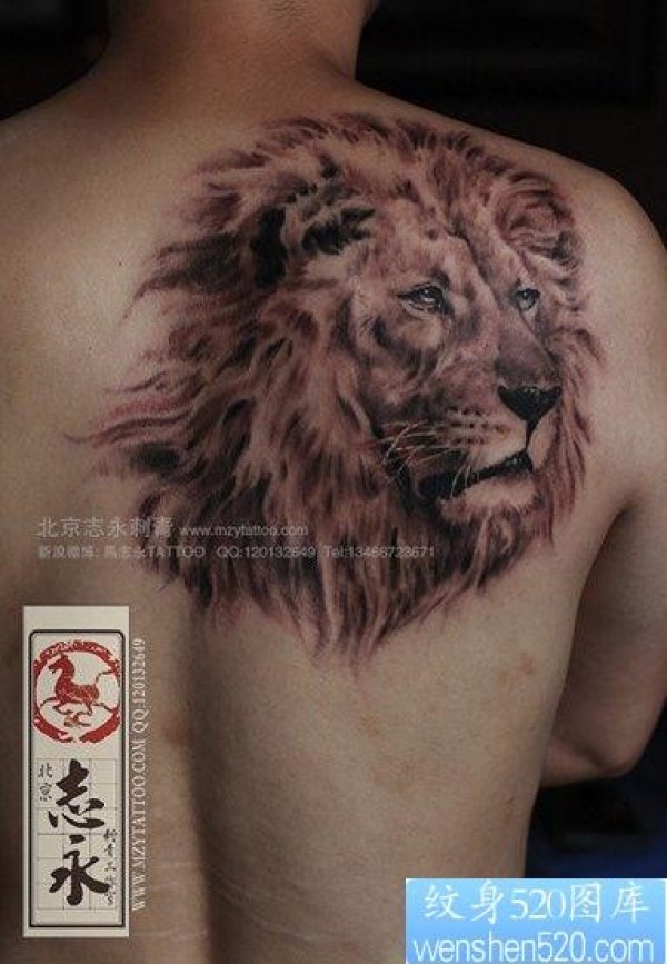 男生后背霸气超酷的狮头纹身图片_后背纹身图案大全_纹身图吧