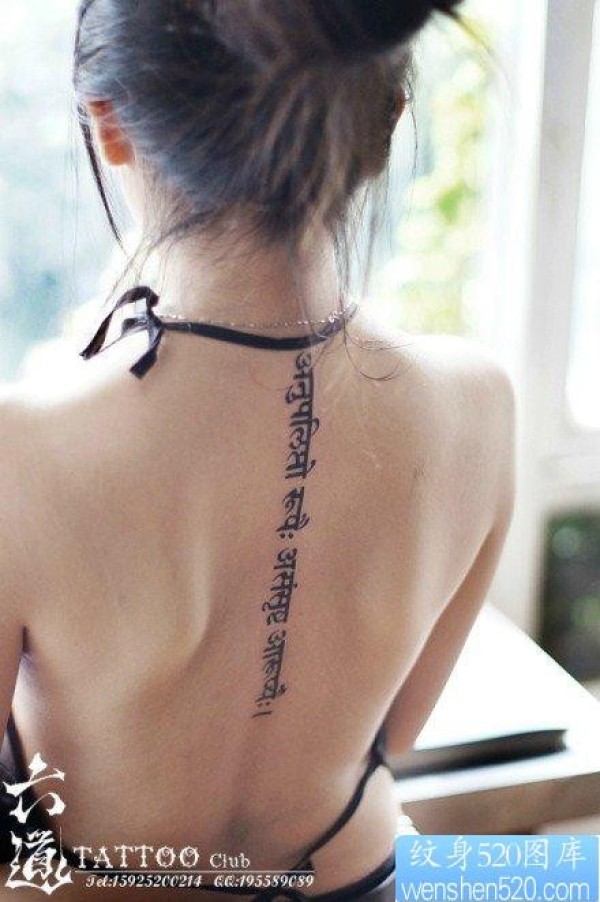 前卫经典的女人后背脊椎藏文纹身图片_后背纹身图案大全_纹身图吧