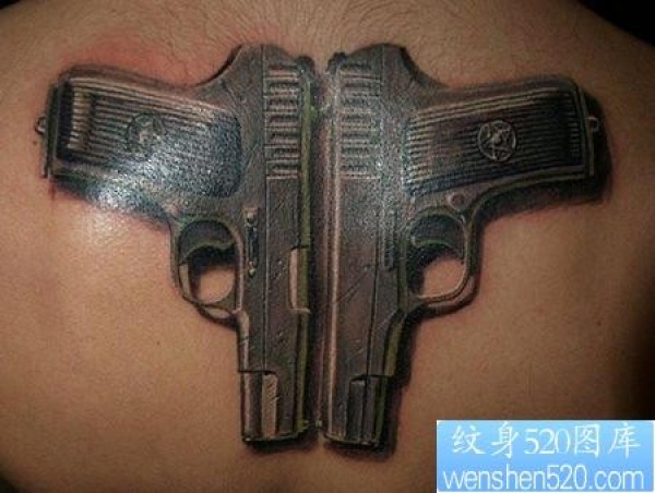 一幅武器纹身背部手枪纹身图片_后背纹身图案大全_纹身图吧