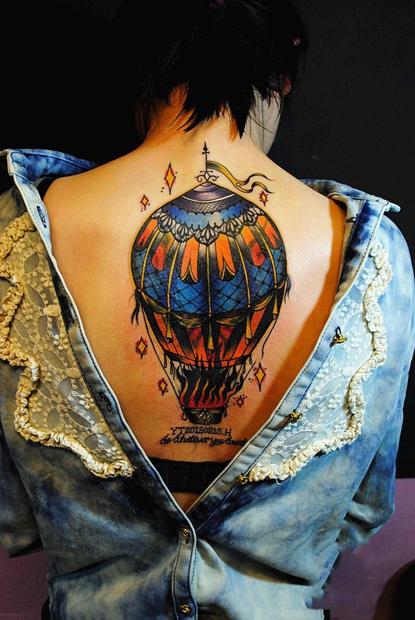 美女后背个性热气球纹身图案_后背纹身图案大全_纹身图吧
