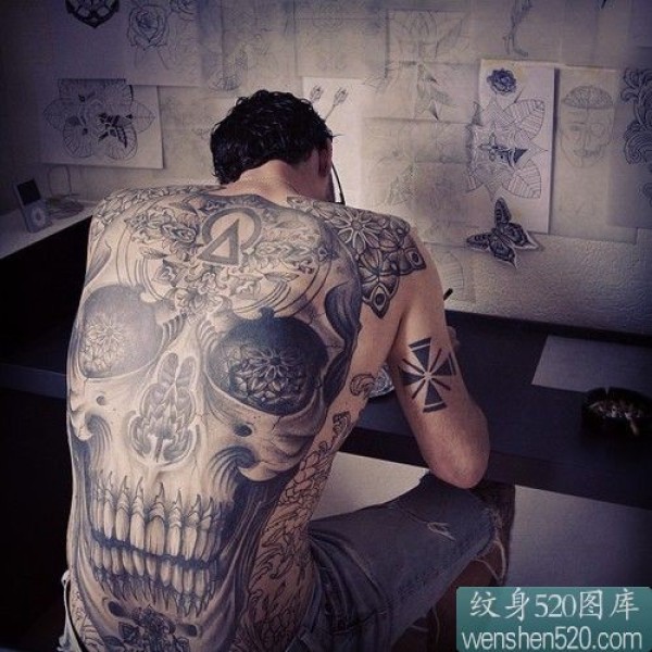 男性后满身的霸气骷髅纹身图片_后背纹身图案大全_纹身图吧