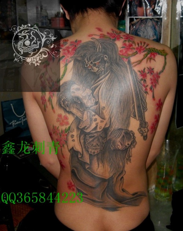 男人背部食人魔鬼刺青_后背纹身图案大全_纹身图吧