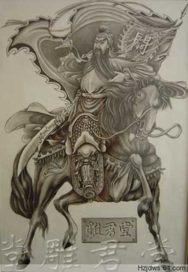 马背上的关羽纹身素材图_后背纹身图案大全_纹身图吧