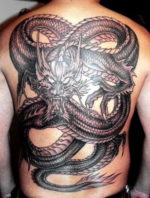 霸气黑龙绕背刺青_后背纹身图案大全_纹身图吧