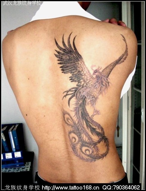 个性男人背部长翅飞鹰刺青_后背纹身图案大全_纹身图吧