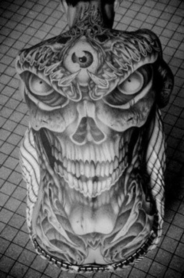 霸气男人背部另类骷髅纹身图片_后背纹身图案大全_纹身图吧