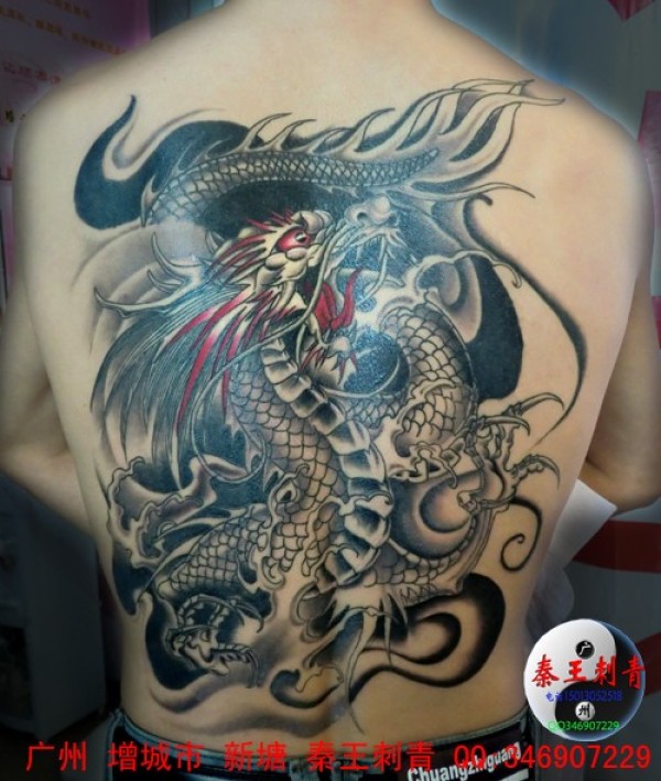 威猛男子背部龙咬尾纹身图片_后背纹身图案大全_纹身图吧