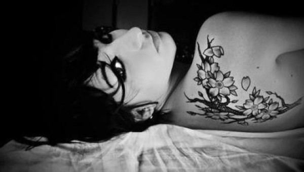 女性背部桃花刺青_后背纹身图案大全_纹身图吧