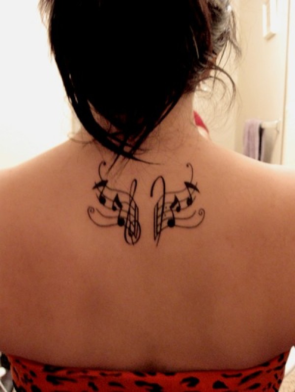 女性后背音符刺青_后背纹身图案大全_纹身图吧
