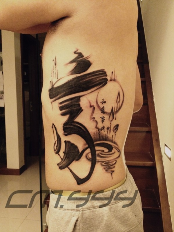 水墨书法家和万事兴文字图案_后背纹身图案大全_纹身图吧