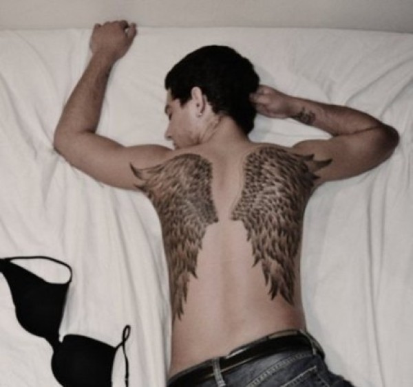 欧美男人背部黑白翅膀唯美刺青_后背纹身图案大全_纹身图吧