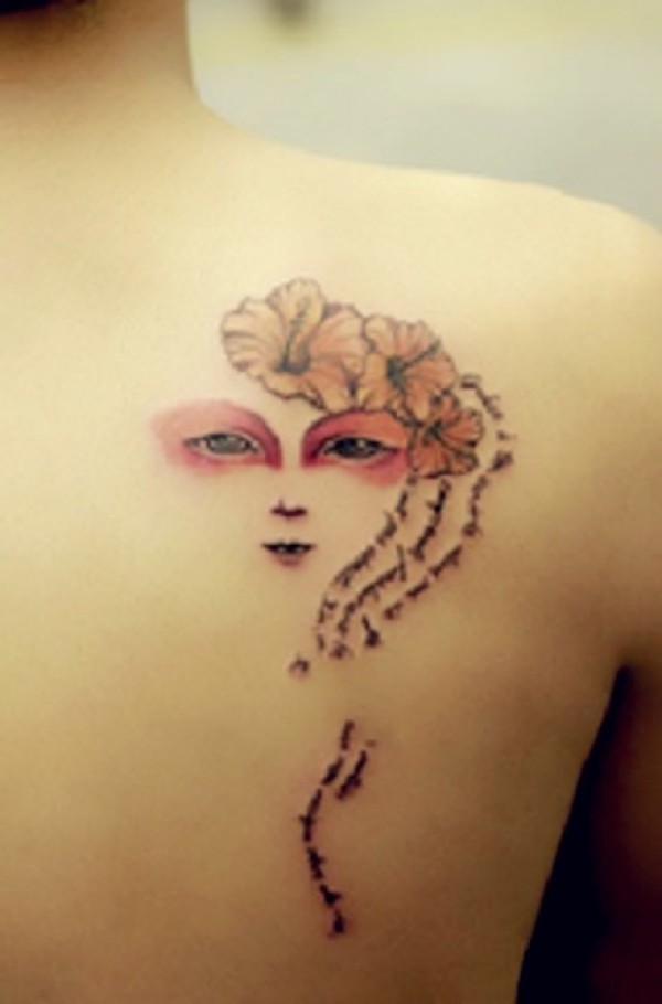 美女背部梅花纹身_后背纹身图案大全_纹身图吧