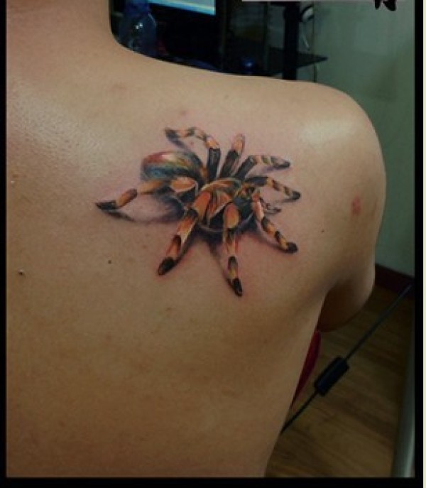 男士后右肩个性彩色蜘蛛纹身图案_后背纹身图案大全_纹身图吧
