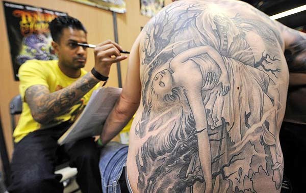 胖子的满背仕女纹身_后背纹身图案大全_纹身图吧