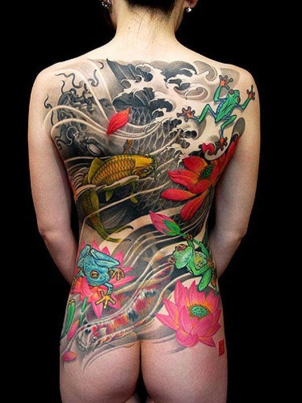 唯美池塘春色满背刺青图案_后背纹身图案大全_纹身图吧